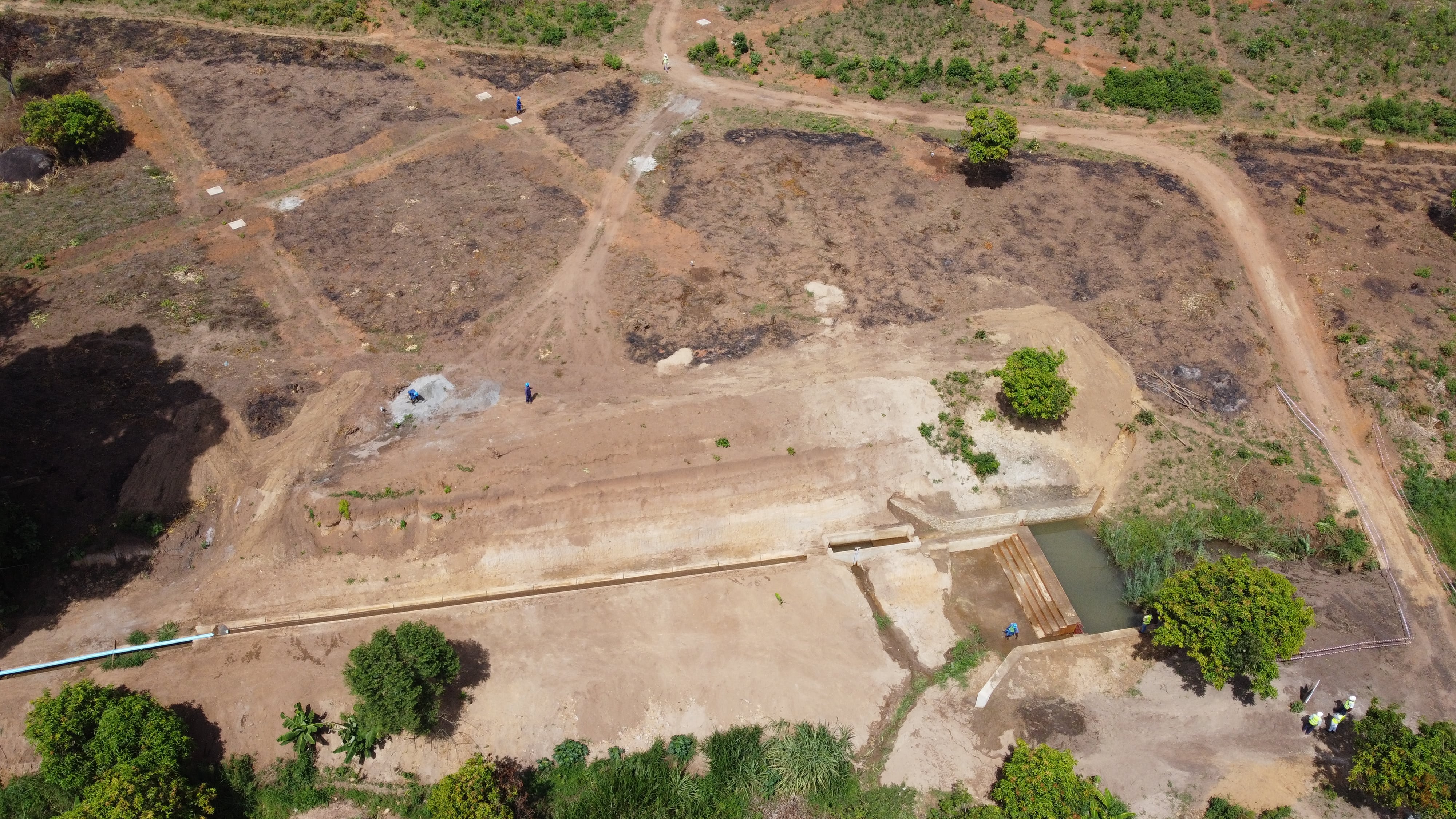 Empreitadas de construção dos regadios 7 de Abril 2 (41 hectares), Chiringandzou (81 hectares) e Chirodzo (130 hectares), na província de Manica, em Moçambique. As obras são da responsabilidade do INIR – Instituto Nacional de Irrigação, com financiamento do Banco Mundial.