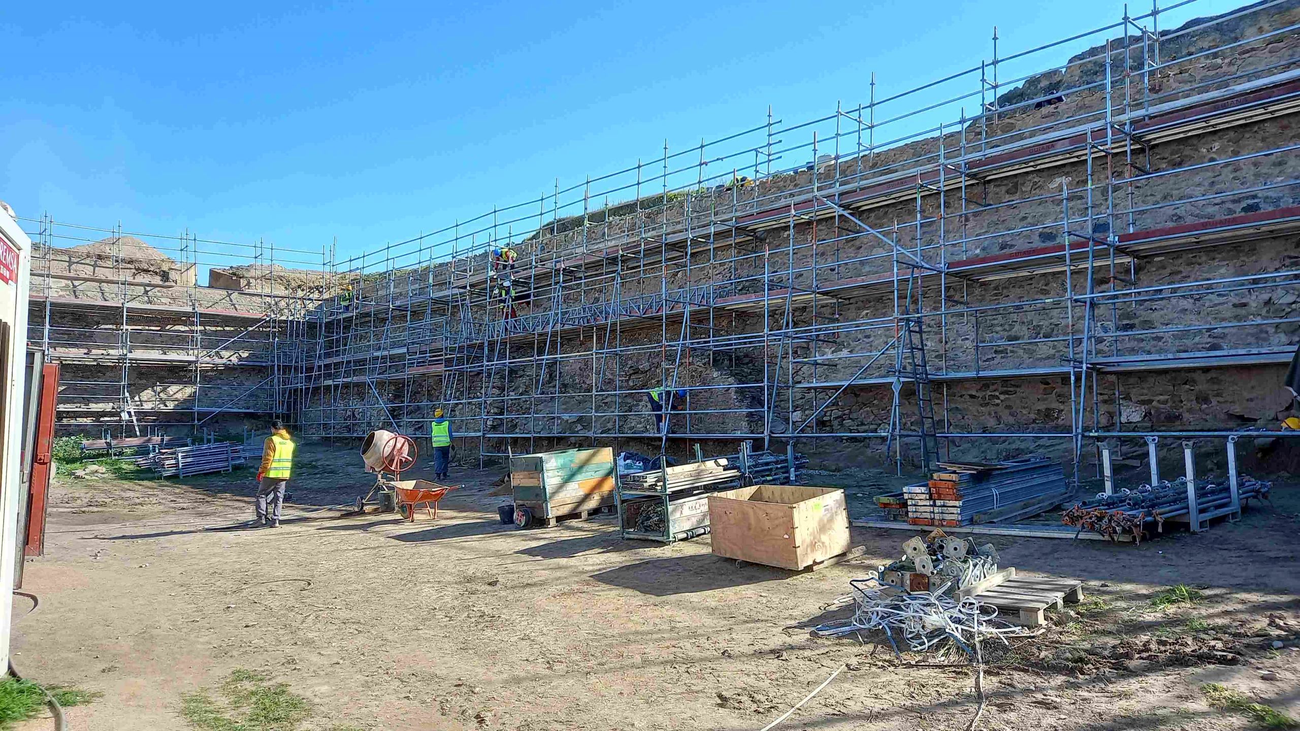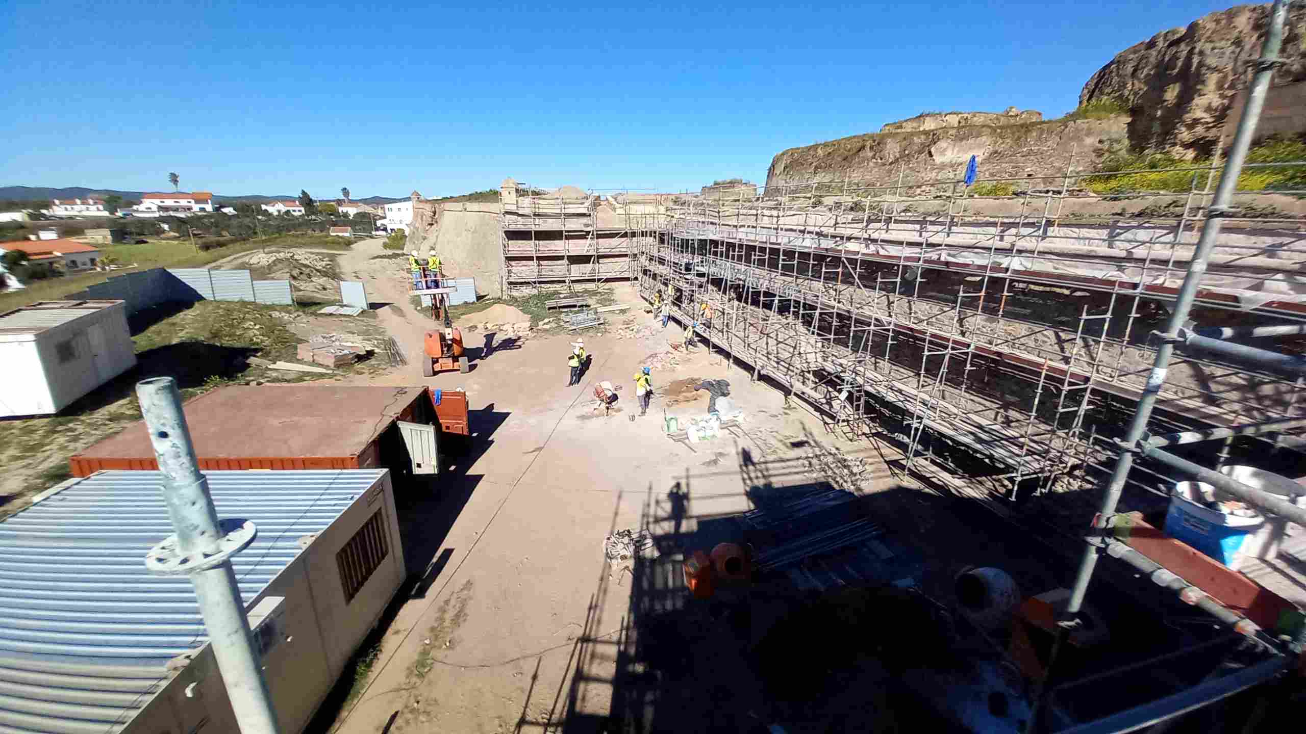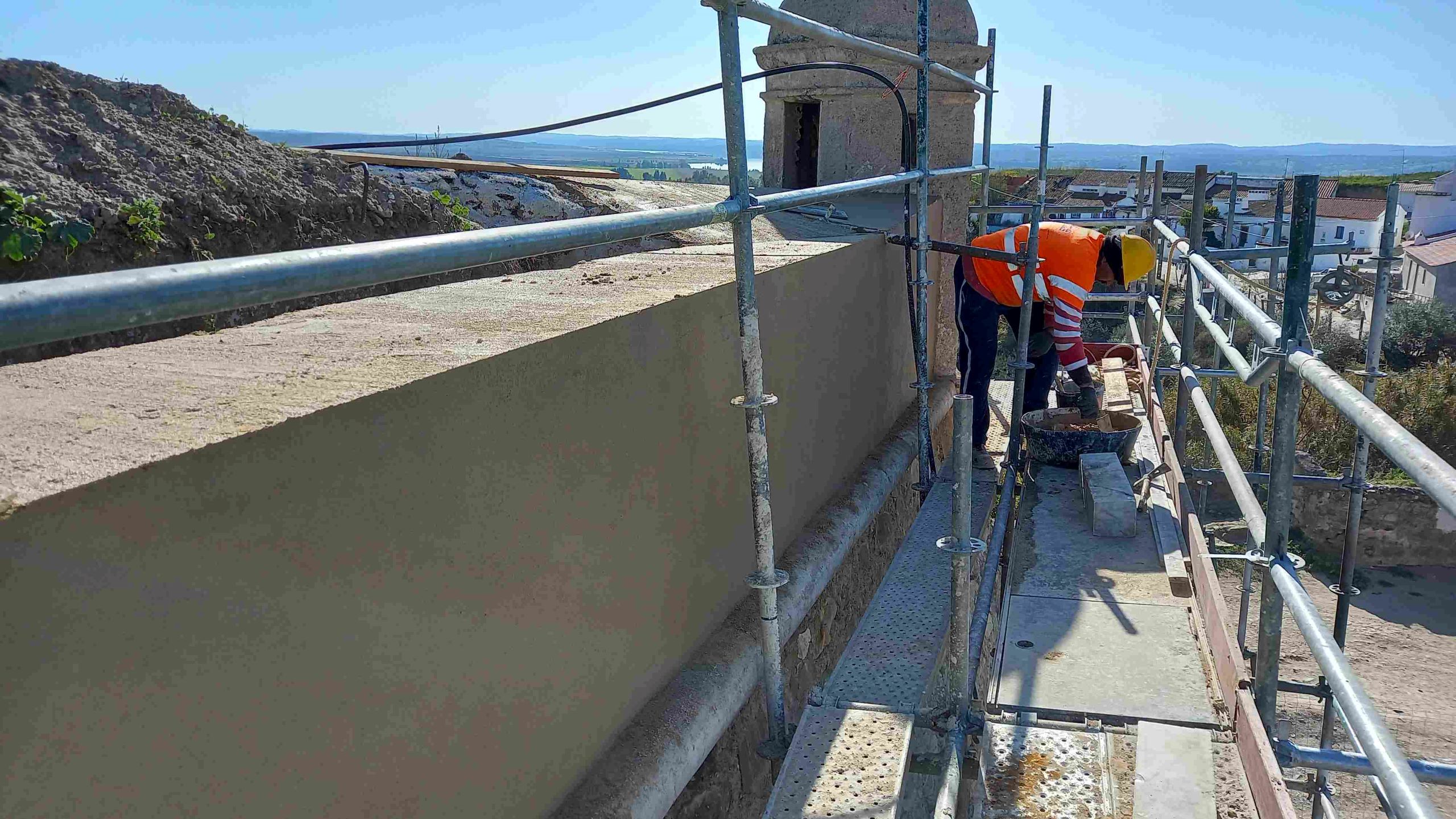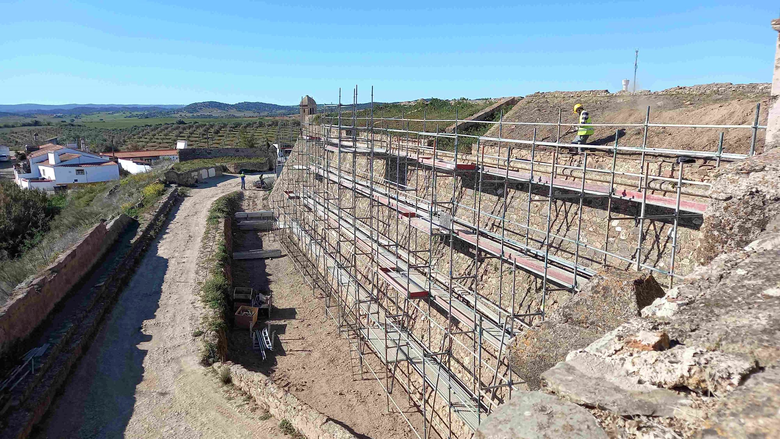 Empreitada de consolidação e restauro das muralhas da antiga Fortaleza de Juromenha, nas margens do Alqueva, em Alandroal, no distrito de Évora. A empreitada consiste na consolidação e restauro dos paramentos do perímetro abaluartado exterior e cerca islâmica e medieval interior da fortaleza.